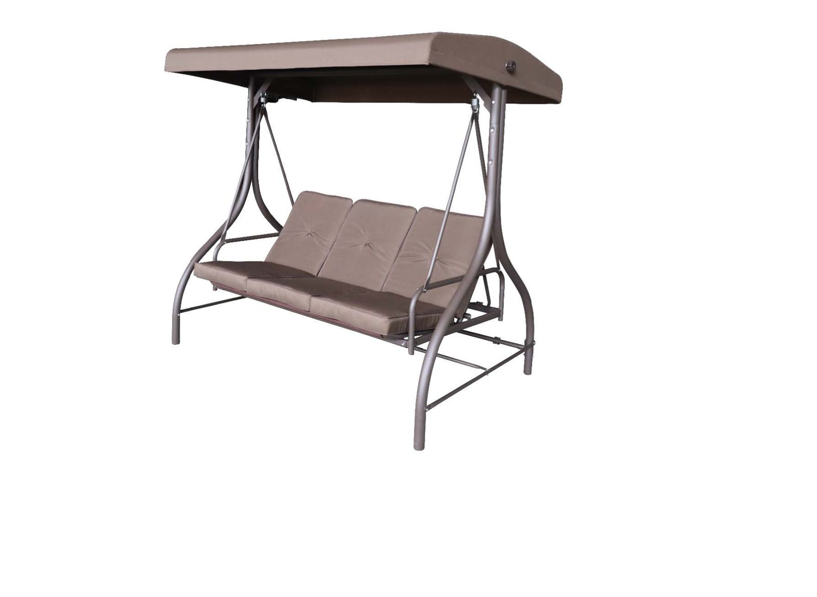 Luxus kivitelű kerti hintaágy, acél vázzal és komax felületkezeléssel. Ágy pozícióba is ledönthető a háttámla. Spriálrugóra függesztve. Nem használható nedves környezetben.