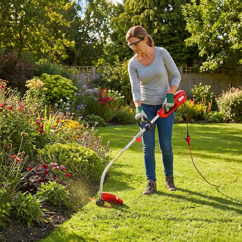 Munka közben mindig viseljen védőfelszerelést, különösen szemvédőt és stabil lábbelit. Javasoljuk, hogy legalább néhány méter biztonságos távolságot tartson a munkaterülettől más emberektől és állatoktól. Minden használat előtt ellenőrizze a damil és a védőburkolat állapotát. A szegélynyíró elsősorban otthoni kertgondozásra szolgál, és nem alkalmas professzionális folyamatos működésre.