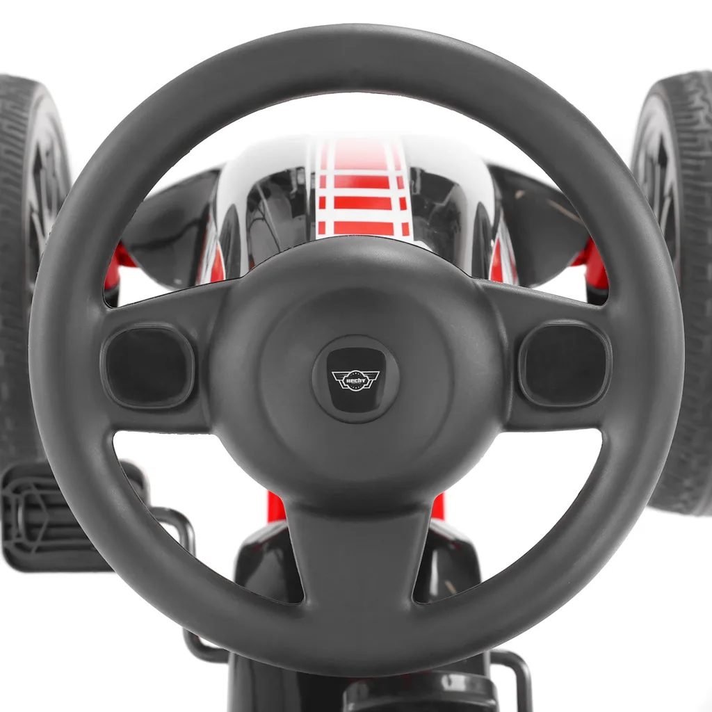 A gokart ergonómiáját úgy tervezték, hogy gyermekeddel együtt növekedjen. A sportos ülés könnyen állítható több pozícióba, így ideális távolságot biztosít a pedáloktól, és kényelmes ülést biztosít több évszakon keresztül. Az érzékeny kormánykerék nagyon precíz és intuitív kormányzást biztosít. A biztonságos megállás érdekében a gokart hatékony kézifékkel van felszerelve, amely mindkét hátsó kerékre hat, és közvetlenül a vezetőülésből könnyen elérhető. Az időtlen fekete dizájn kontrasztos kiegészítőkkel vad és exkluzív sportos megjelenést kölcsönöz a gépnek, amely bármilyen játszótéren kiemelkedik.